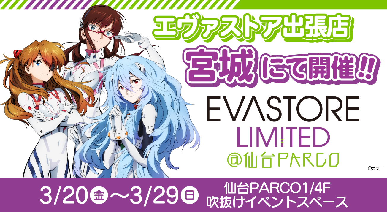 NEW式波・アスカ・ラングレー Ver. RADIO EVA Part.2 再販決定! Read More 2026.02.24★ PICK UP宇部の魅力無限大∞「まちじゅうエヴァンゲリオン第5弾」追加発表!PR静岡県浜松市合併20周年記念 「シン・ハママツ計画」始動!PR公式資料集「全記録全集」シリーズから『シン・エヴァンゲリオン劇場版』の「ビジュアルストーリー版」がついに2025年3月8日(土)発売決定!★2025.01.06宇部の魅力無限大∞「まちじゅうエヴァンゲリオン第5弾」追加発表!★2025.10.25エヴァストアスタッフで、「シン・ハママツ計画」に行ってみた!★2025.05.28『エヴァ』放送30周年記念!山下いくと直筆サイン入りA4サイズ複製原画が、抽選で合計6名様に当たる書籍購入キャンペーンが開催中!★2025.10.27レギュラーラジオ番組『FM EVA 30.0』が10月4日(土)より放送開始!毎週土曜22時30分~TOKYO FM/JFN全国38局にて★2025.09.25『エヴァンゲリオン』シリーズ30th記念「最後のシ者 渚カヲル展」開催決定!第1弾記念商品解禁!★2025.08.08「EVANGELIONシリーズ30周年×YOKOHAMA」キャンペーン開催決定!★2025.12.18ムービックより「P 新世紀エヴァンゲリオン ~未来への咆哮~」レプリカIMPACTレバーが登場!!★2025.12.19『エヴァンゲリオン』 シリーズ初、映像とともに楽しめるコンサート 「BACK TO NEON GENESIS」公演決定!★2025.12.29 PR NEWサッポロ生ビール黒ラベルと『エヴァンゲリオン』コラボ企画が決定!2月21日(土)より開催の「EVANGELION:30+; 」には黒ラベルブース登場! Read More 2026.02.20★ NEW『エヴァンゲリオン』シリーズ30周年記念、人気ブランドとコラボレーションしたファッションアイテムをZOZOTOWNで2月20日より販売 Read More 2026.02.20★ NEW『エヴァンゲリオン』とRazerがコラボ!エヴァ2号機をモチーフにしたデザインのゲーミングデバイスが日本国内でも発売決定! Read More 2026.02.19★ 「エヴァンゲリオン感謝祭」マルイシティ横浜での開催が決定! Read More 2026.02.18★ 【EVANGELION:95】2026 S/S 1th Drop 2月13日(金)より開始! Read More 2026.02.17★ 「特務機関NERV指定防災備蓄品計画」より、使い捨て簡易トイレ「特務機関NERV指定 緊急トイレパック 10個入」が登場! Read More 2026.02.17★ 「CASETiFY」との『エヴァ』コラボ第2弾が2/20(金)に発売!『EVANGELION:30+;』30周年フェスイベントでは限定商品も登場!#エヴァフェス Read More 2026.02.17★ 【新商品情報】EVANGELION STOREより、場面写フルグラフィックTシャツが登場! Read More 2026.02.16★ ガシャポン、めじるしアクセサリーでEVA POCKETが発売! Read More 2026.02.16★ EVANGELION×MOUSTACHEの30周年記念コラボよりバッグ2型と財布2型が登場! Read More 2026.02.13★ 米山舞の描き下ろしカバーイラストが目印!「KAWORU INFINITY∞ 渚カヲル写真集2」2026年2月14日(土)発売! Read More 2026.02.13★ エヴァンゲリオンとコピックが初コラボ!2月21日より先行販売開始! Read More 2026.02.12★ 「一番くじ 新世紀エヴァンゲリオン 30th Anniversary」好評販売中! Read More 2026.02.11★ 「EVANGELIONシリーズ30周年×YOKOHAMA」ナイト企画追加決定! Read More 2026.02.10★ 『エヴァンゲリオン』シリーズ30周年イベントにあわせて東京タワーがエヴァ初号機カラーにライトアップ!TOKYO FM「FM EVA 30.0」コラボ展開も! Read More 2026.02.10★ 「EVANGELION:30+;30TH ANNIVERSARY OF EVANGELION」の「STAGE AREA」生中継配信チケット発売中! Read More 2026.02.10★ 「EVA GLOBAL」第10弾、 細部のクオリティにこだわったぬいぐるみで、国内外で親しまれているGiftぬいぐるみシリーズに「エヴァンゲリオン」が登場! Read More 2026.02.10★ 1234Next ›Last »