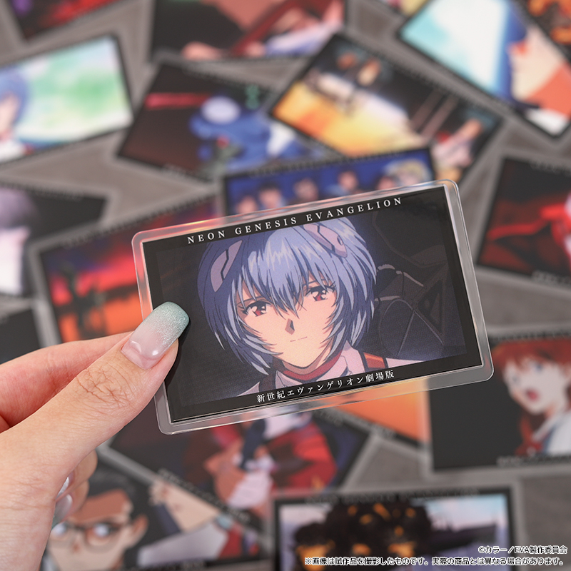 『新世紀エヴァンゲリオン劇場版』の場面写を使用したラミネートカードです。1パックにつき2枚ランダムで封入されています。