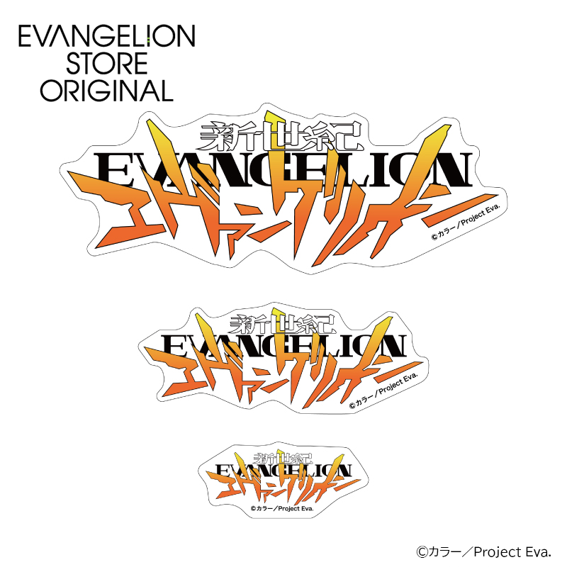 『新世紀エヴァンゲリオン』のロゴをあしらった、大・中・小サイズの3枚入りダイカットステッカー。サイズに合わせて様々な物にしっかりと貼れる仕様です。