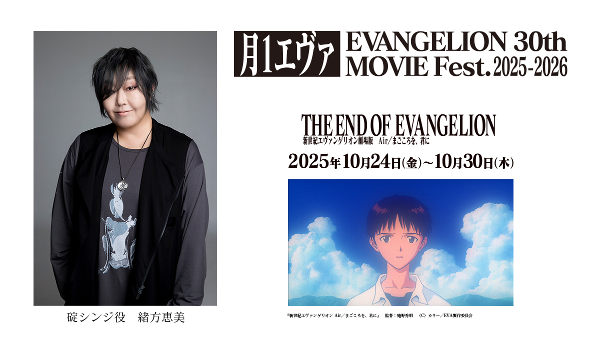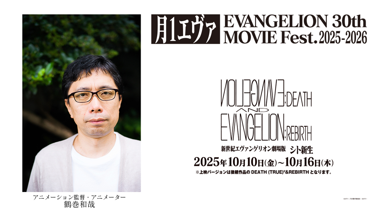 10月10日(金)からの『新世紀エヴァンゲリオン劇場版 シト新生』(上映バージョンは後継作品のDEATH(TRUE)²&REBIRTH)にはREBIRTH編の監督を務めた鶴巻和哉。そして、10月24日(金)からの『新世紀エヴァンゲリオン Air/まごころを、君に』には碇シンジ役・緒方恵美によるコメントが冒頭に上映されます。