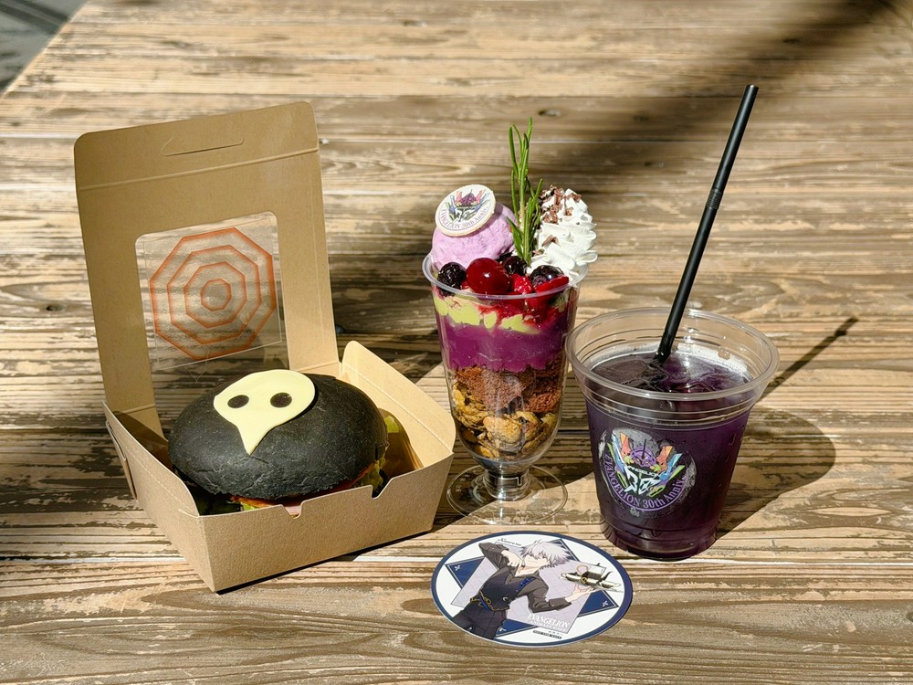 今回わたしが注文したのは…!第4使徒サンド・30周年アニバーサリーパフェ・カヲルくんのドリンク!