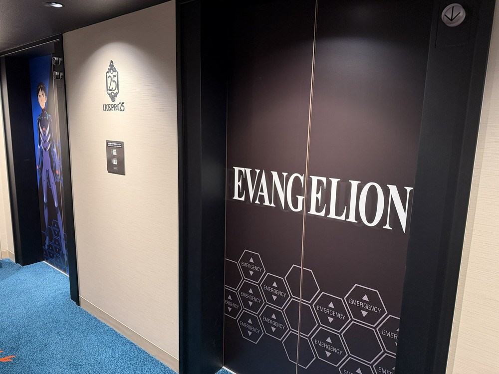 \ルームカードキーは記念に持ち帰りOK!/さっそくコンセプトフロア「IKEPRI25」へ向かうと…エレベーターホールからエヴァンゲリオン尽くしでテンション上がりますっ!!