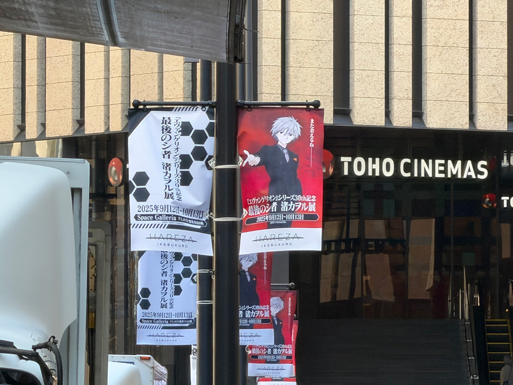 \池袋はカヲル展の幟もズラリ!/また会おうねカヲルくん…!