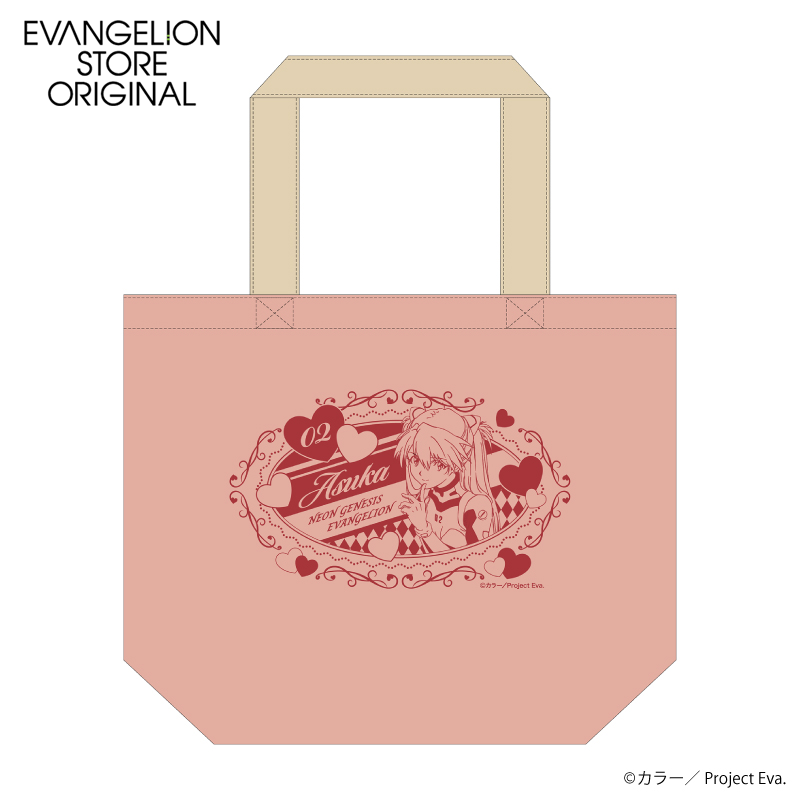 描き下ろしイラストを使用したトートバッグです。手触りのよいコットン製で、ハートマークに囲まれたアスカやレイが可愛いアイテムです♡