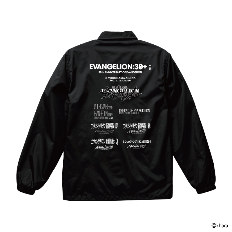 イベントロゴをデザインしたジャケットです。背面にはTシャツ同様『エヴァンゲリオン』シリーズの各作品ロゴがデザインされており、作品の30周年の軌跡を感じられるアイテムです。