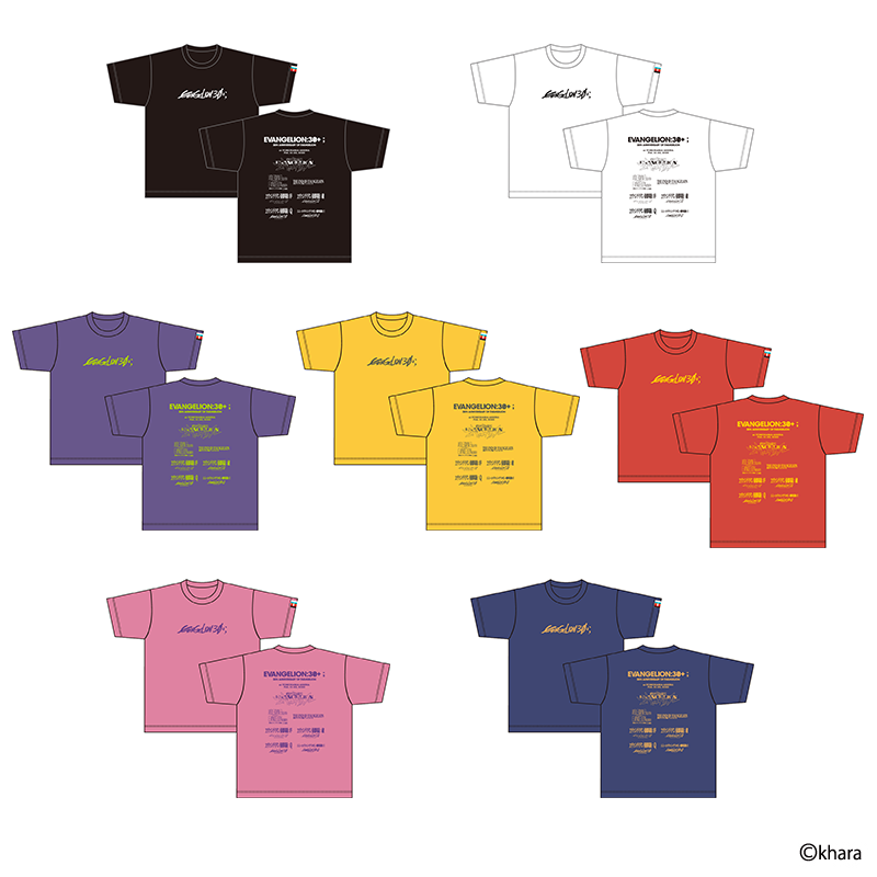イベントロゴをデザインしたTシャツです。背面は『エヴァンゲリオン』シリーズの各作品ロゴがデザインされており、作品の30周年の軌跡を感じられるアイテムです。
