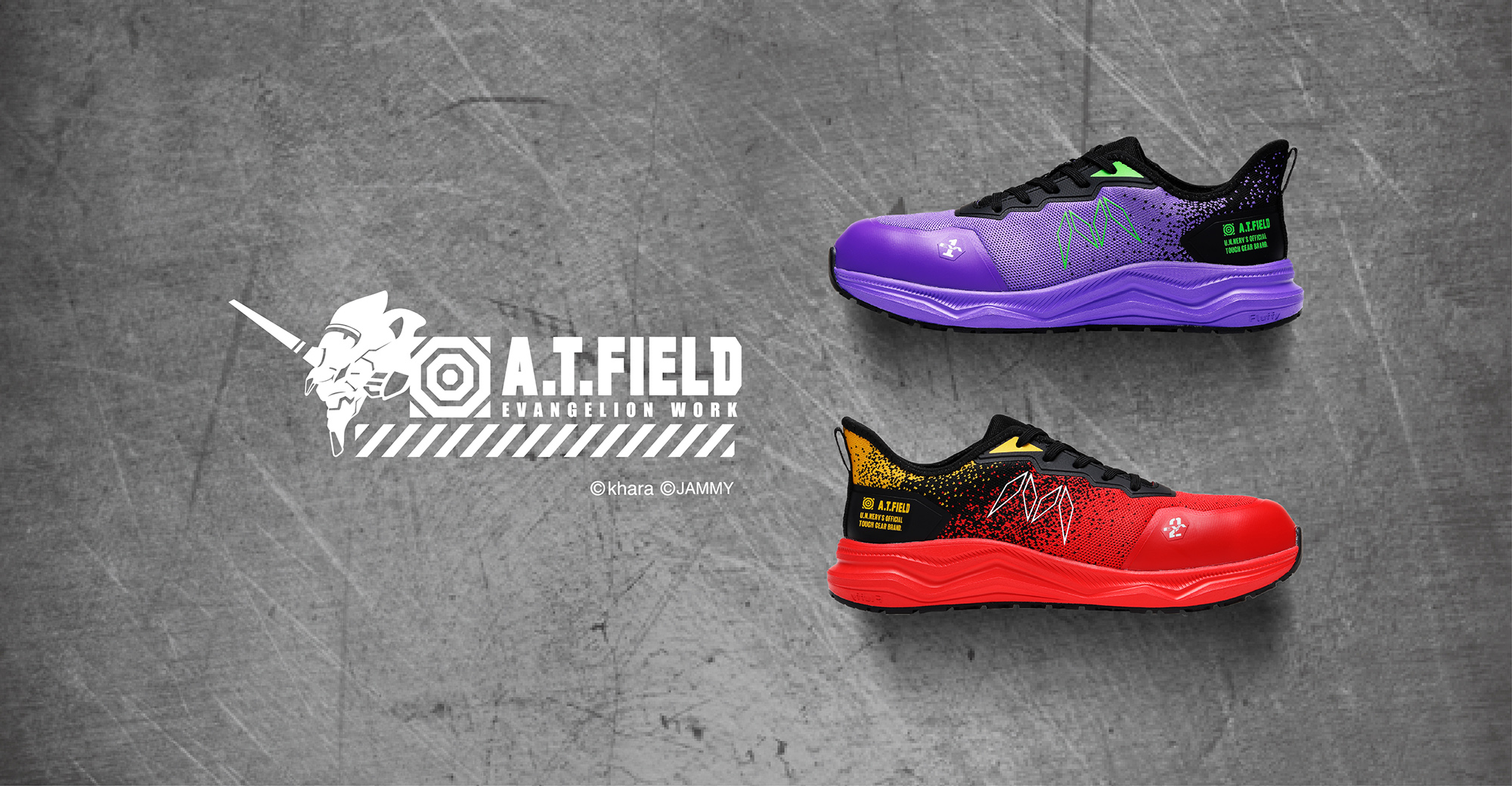 ワークブランド「A.T.FIELD」と作業用シューズブランドの「MANDOM」の第3弾コラボが実現。初号機と2号機をイメージしたセーフティスニーカーが新登場!