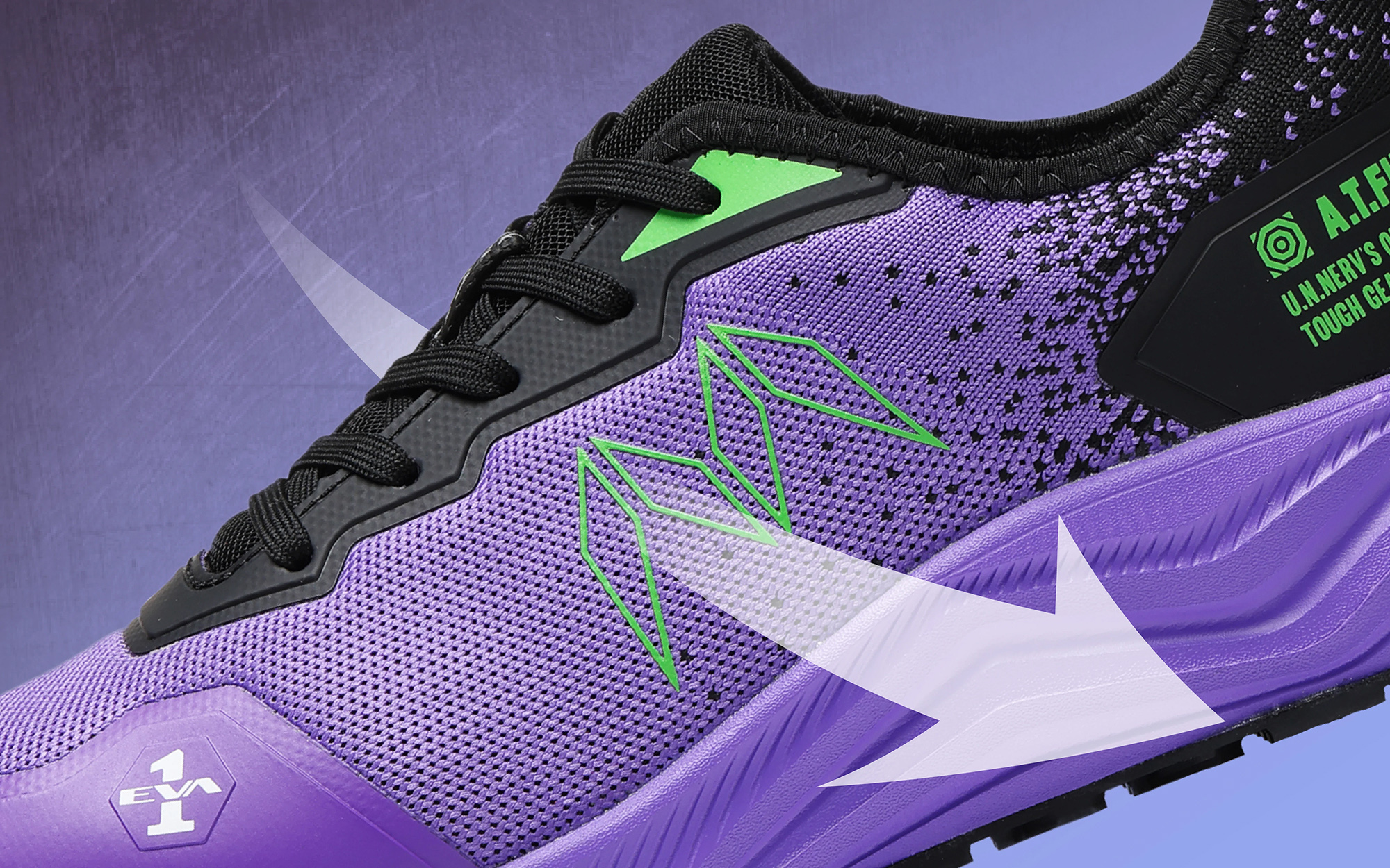 ミッドソールに高反発素材の「Fluffy Energyフォーム」を採用することで、長時間の立ち仕事でも疲れにくく、足への負担を軽減。アッパーは通気性の高いニット素材で、足に心地よくフィットします。カラーは初号機と2号機をイメージした2カラー展開。アッパーやインソールにエヴァンゲリオンの世界観を感じられるロゴをあしらうことで、さりげない存在感を放つデザインに仕上げました。