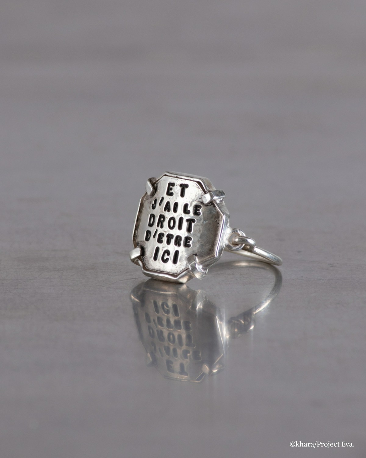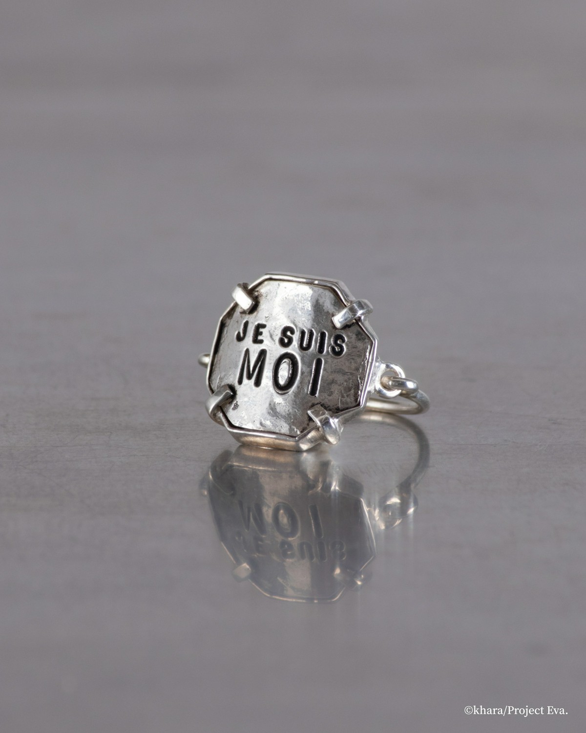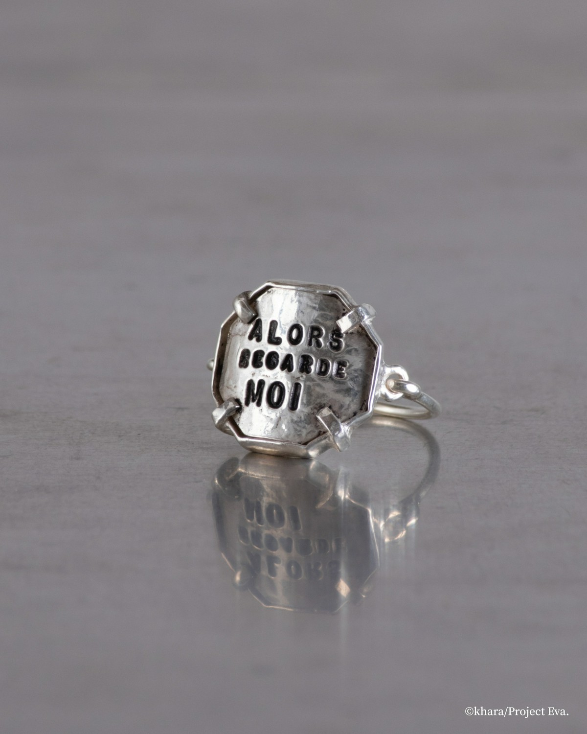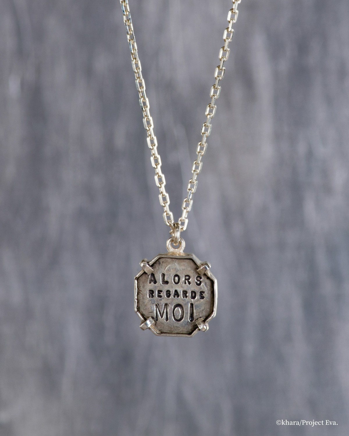 本コレクションでは、SERGE THORAVALを代表するリング・バングル・ネックレスの3アイテムが登場します。ブランドの象徴であるフレーム型の造形をベースに、手仕事ならではの温もりと、叩き上げたメタルの粗野で力強い質感を活かして仕上げられています。各アイテムには、『新世紀エヴァンゲリオン』の世界を象徴する3人の主要キャラクターの言葉を刻印。いずれもロックが作品への理解と自身の感性から選び抜いたフレーズです。
