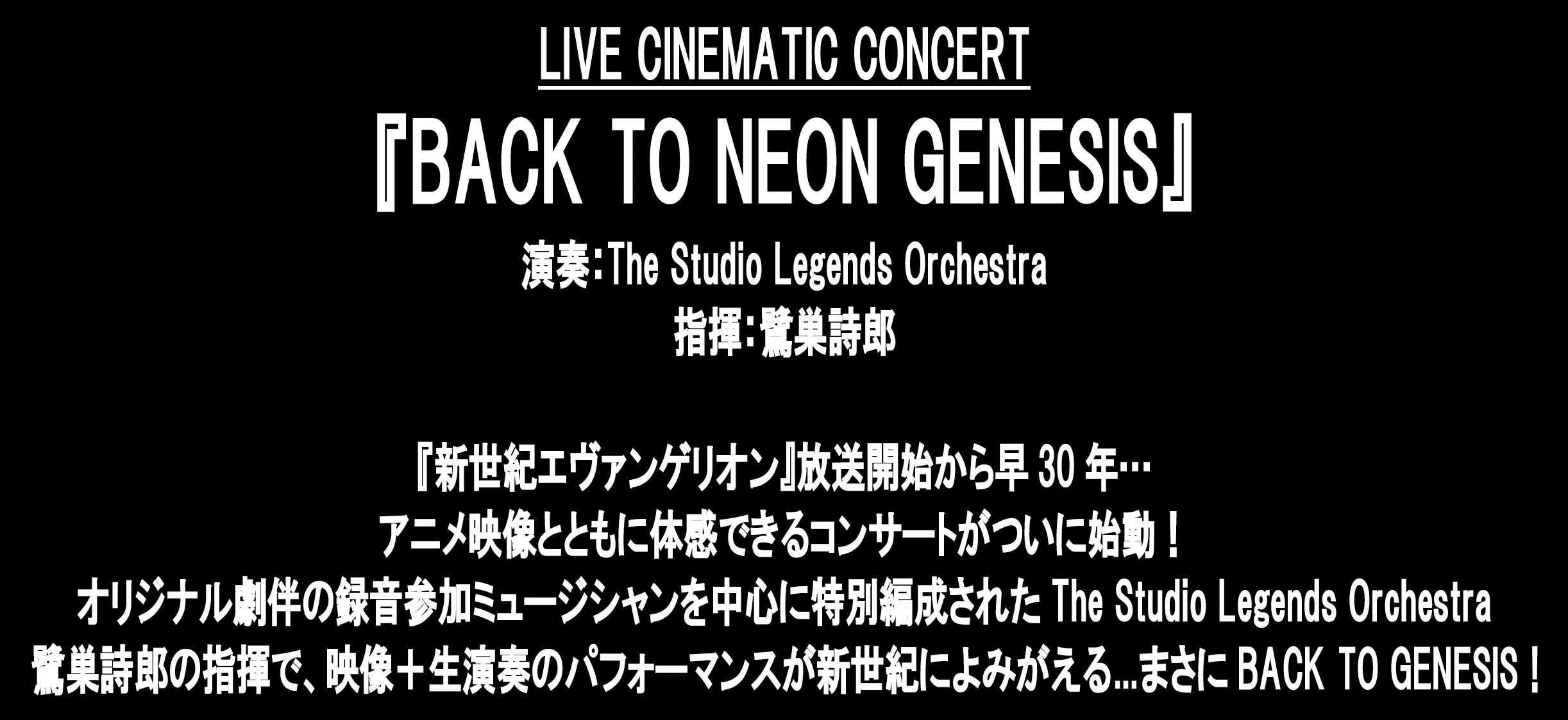 『エヴァンゲリオン』 シリーズ初、映像とともに楽しめるコンサート 「BACK TO NEON GENESIS」公演決定!
