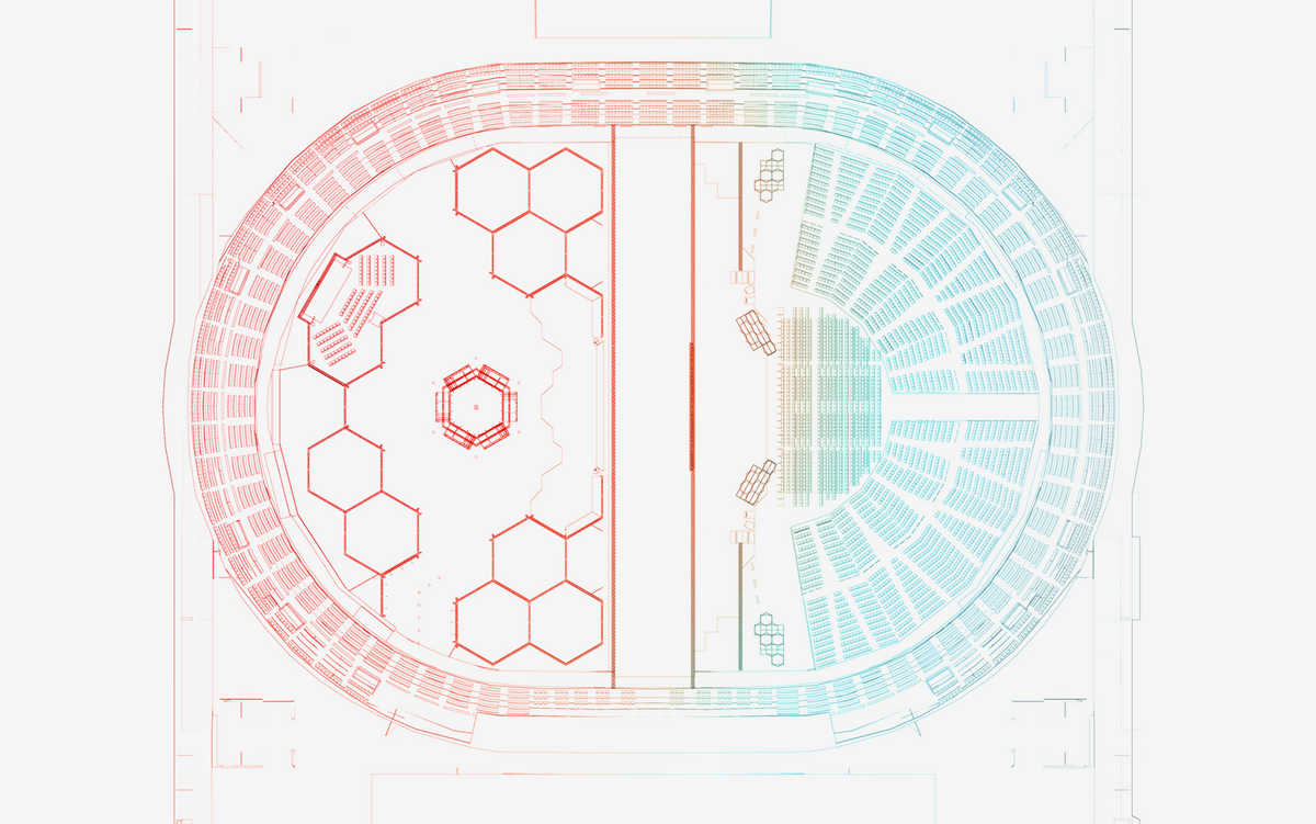 横浜アリーナをセパレートして構築された「STAGE AREA」は、横18m・縦15mの大型LEDをステージに設置。エヴァンゲリオンに関連した多彩な演目をご覧いただける特設ステージです。また庵野秀明監督・総監督をはじめとし、さまざまな出演者様を迎えてのパフォーマンス、音楽コンテンツなどを予定しています。毎日およそ3ブロックの演目を、多彩な内容で展開します。
