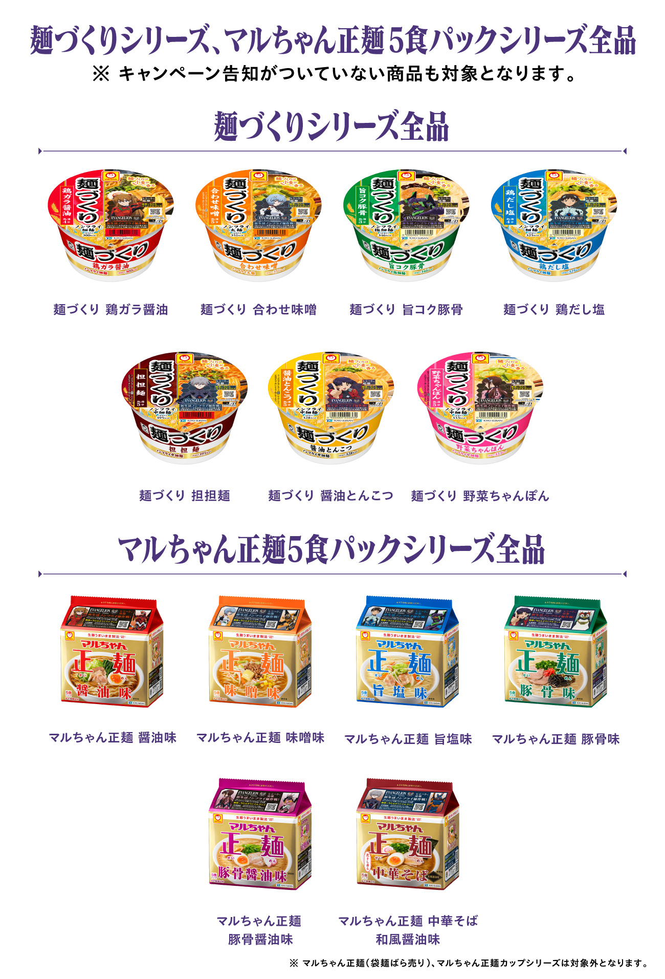 東洋水産のノンフライ麺を代表する商品である、カップ入り即席麺「麺づくり」シリーズと、即席袋麺「マルちゃん正麺」5食パックシリーズを対象に実施。キャンペーンサイトから、対象商品を購入したレシート画像をアップロードすることで応募でき、抽選で合計800名様に、描き下ろしイラストを使用した『エヴァンゲリオン』オリジナルコラボグッズが当たります!