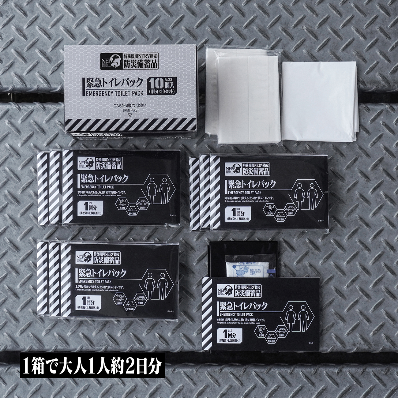 「特務機関NERV指定防災備蓄品計画」より、使い捨て簡易トイレ「特務機関NERV指定 緊急トイレパック 10個入」が登場!
