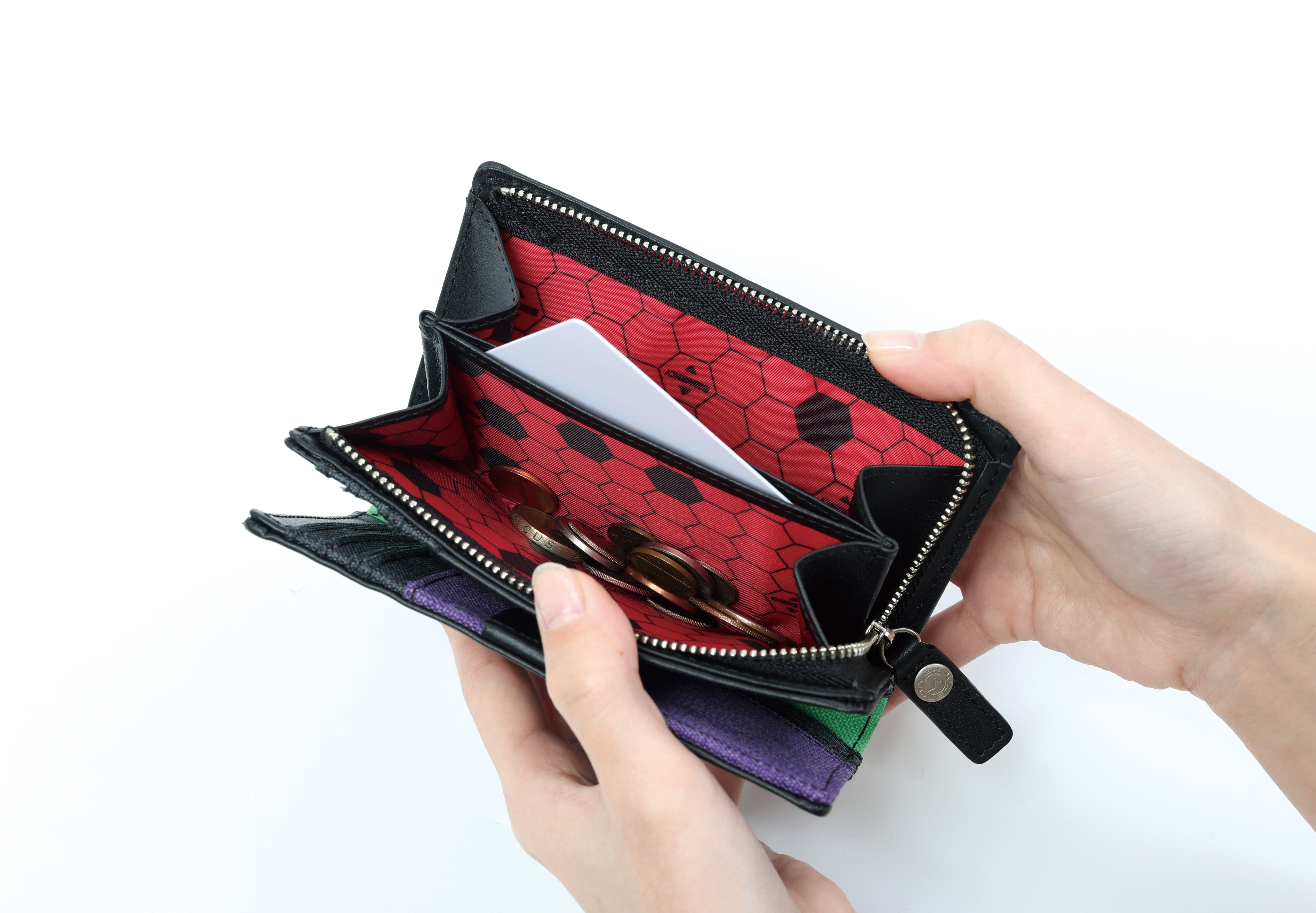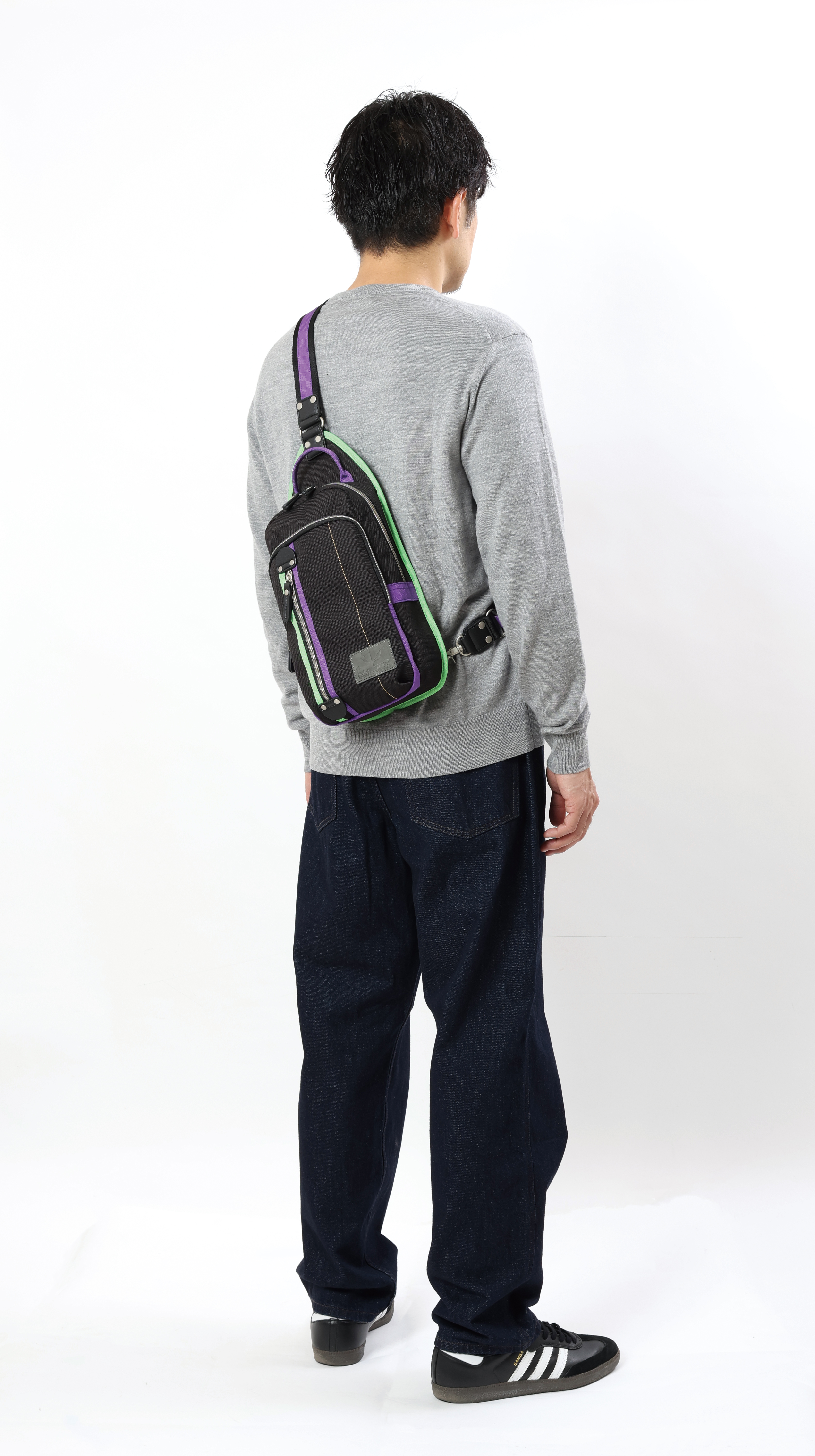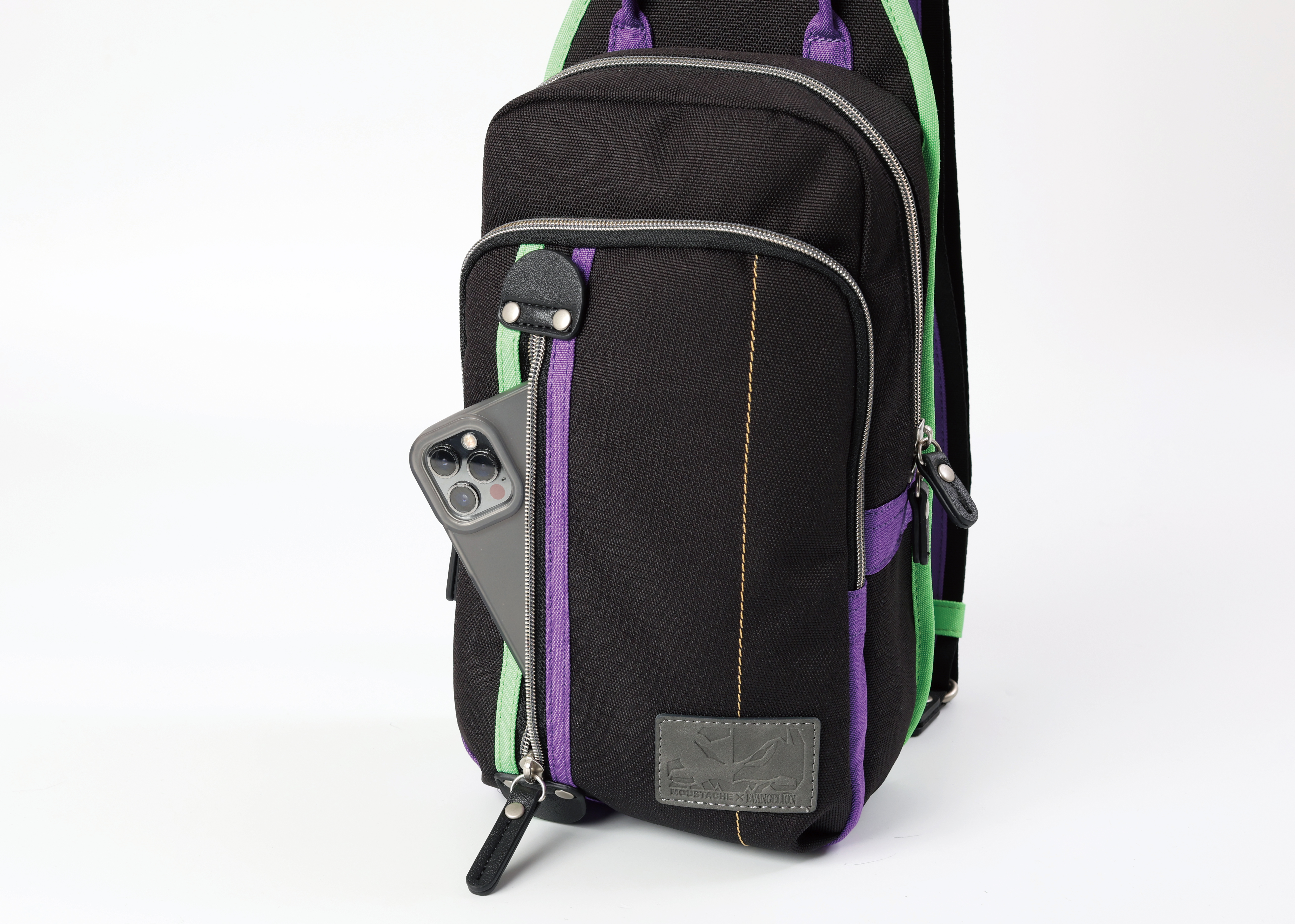 バッグはコンパクト過ぎずデイリーユースに最適なサイズ感の縦型ボディバッグとウエストバッグの2型。さらにコラボ初の財布は、ミドルサイズの大容量財布と、スリムな設計でジャケットの内ポケットなどにも出し入れしやすい二つ折り財布の2型をご用意。カラーはそれぞれ初号機・2号機・Mark.06の3色展開。