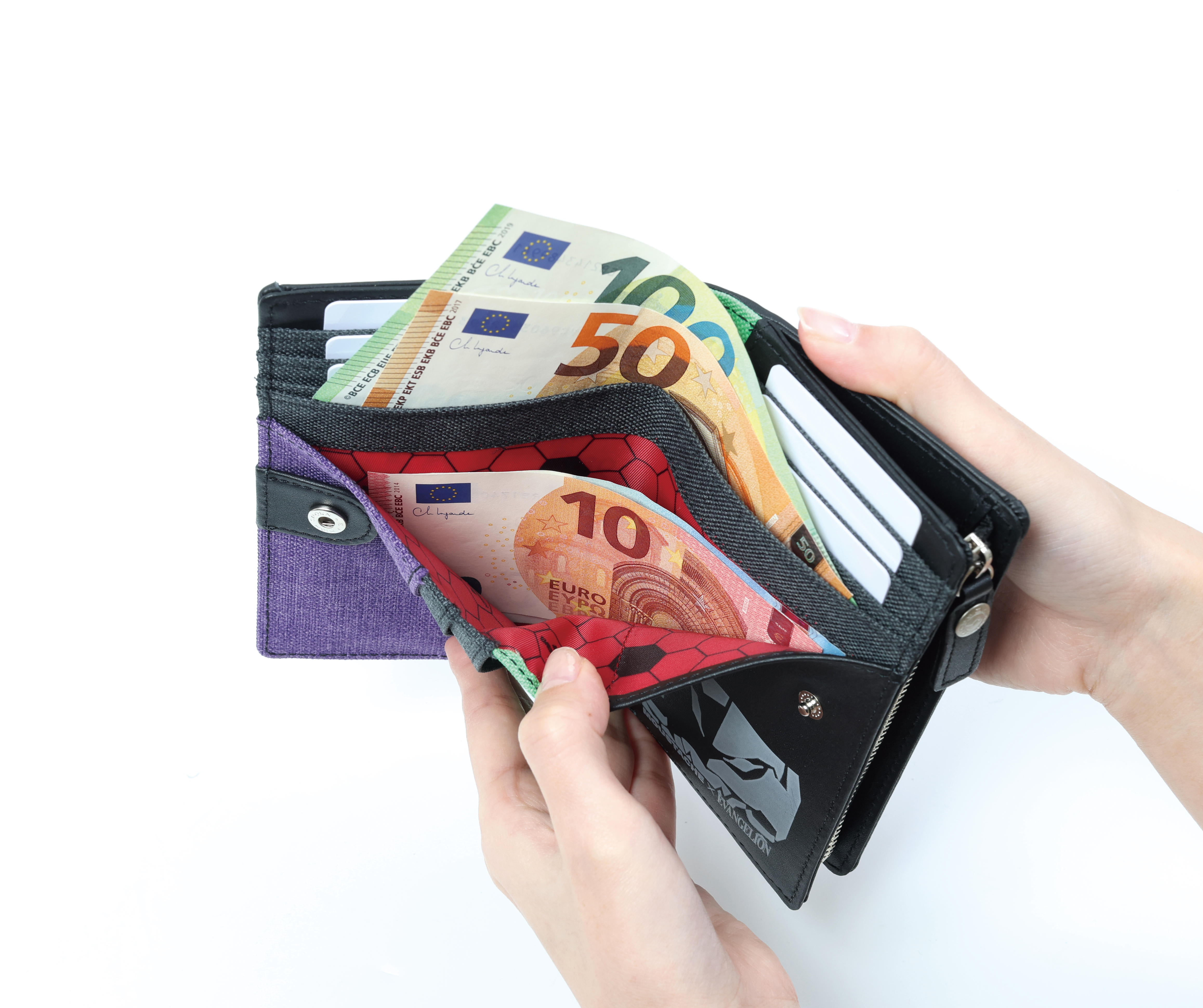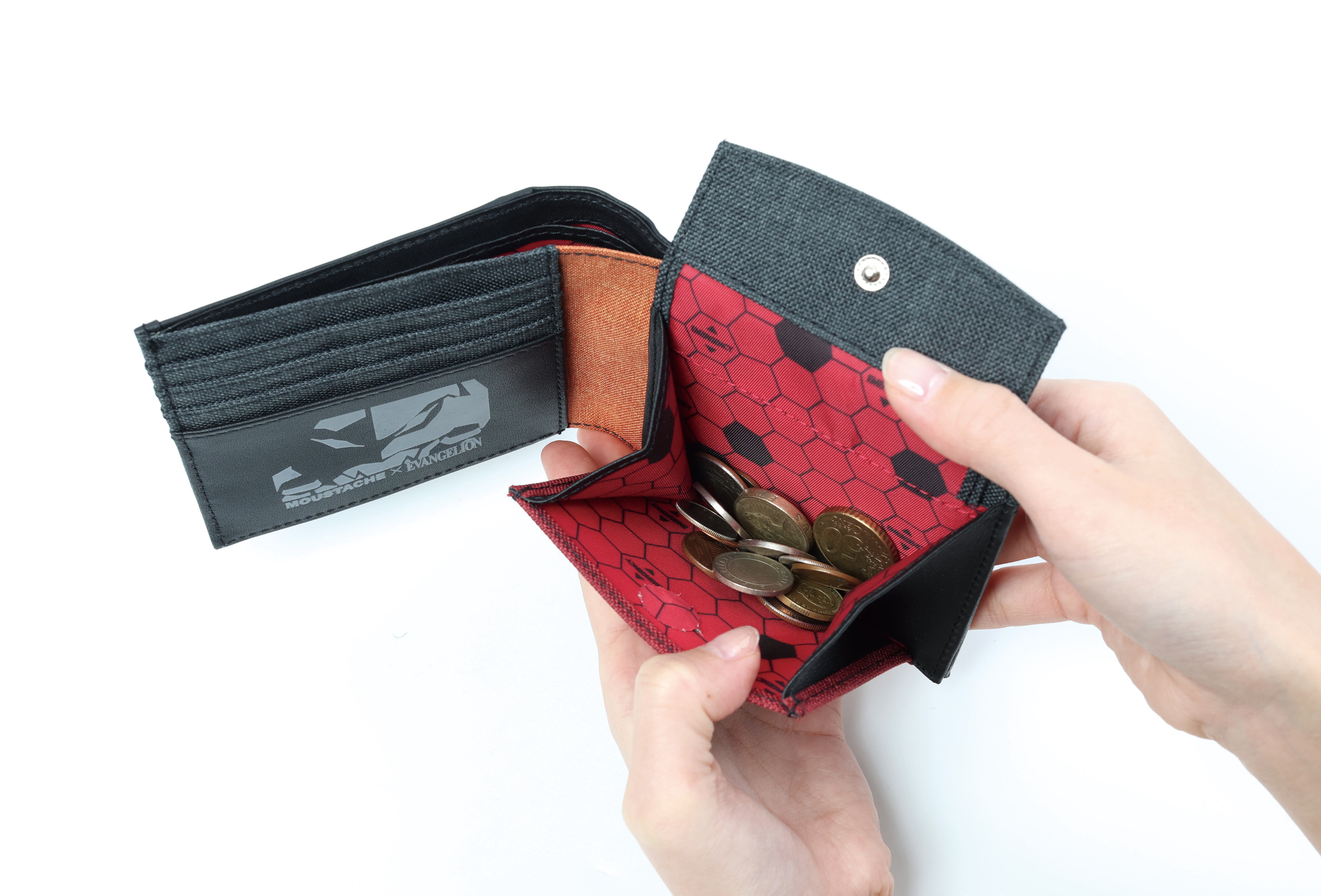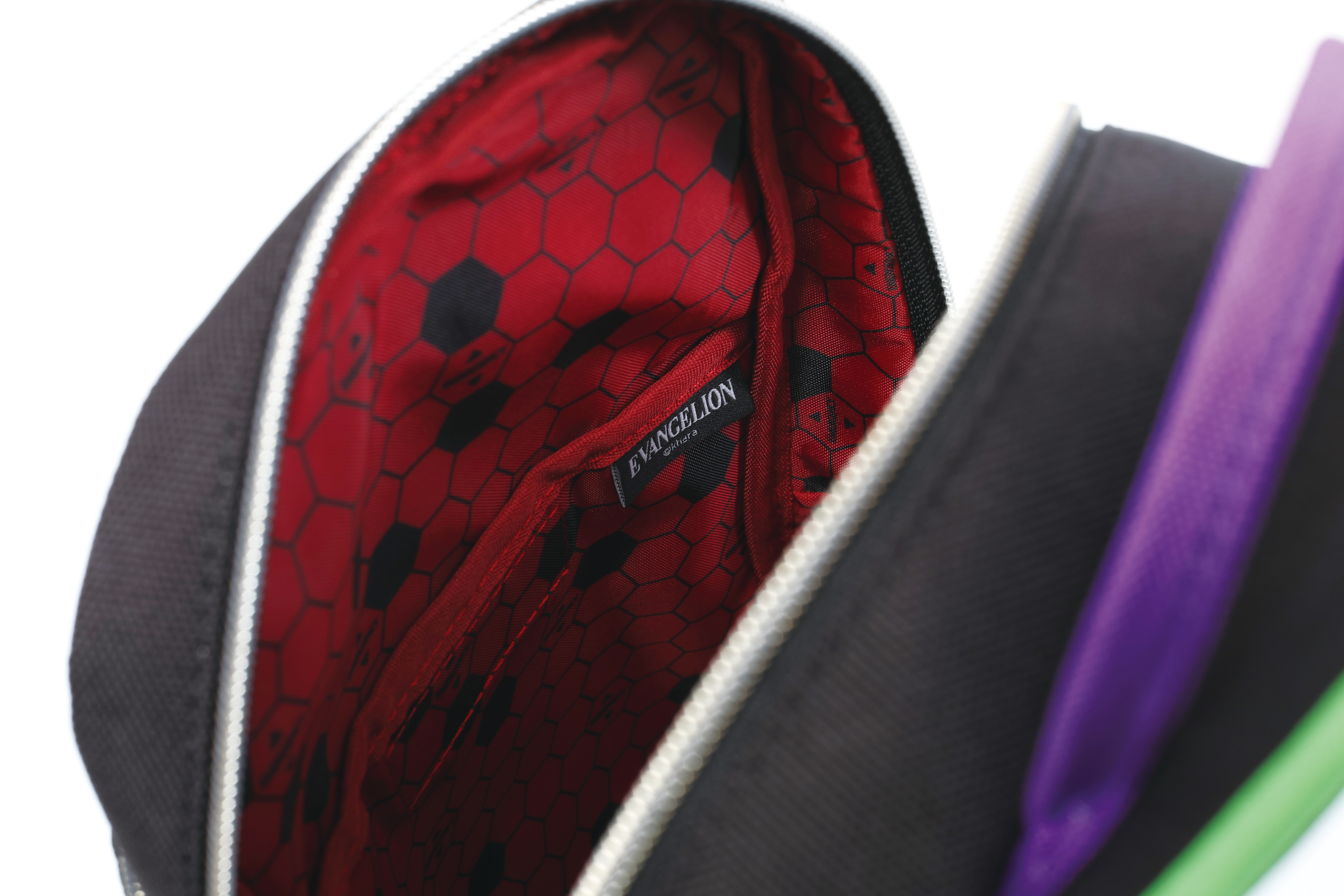 バッグの本体素材には程よくハリのあるポリエステル生地を採用。財布には杢調ポリエステル生地を採用しカジュアルながら落ち着いた印象に仕上げております。ブラックメインの本体へ各機体をそれぞれイメージしたカラーリングを落とし込み、内生地はコラボ定番のEMERGENCY総柄プリントを施し、開ける度にエヴァンゲリオンの世界を味わうことができます。