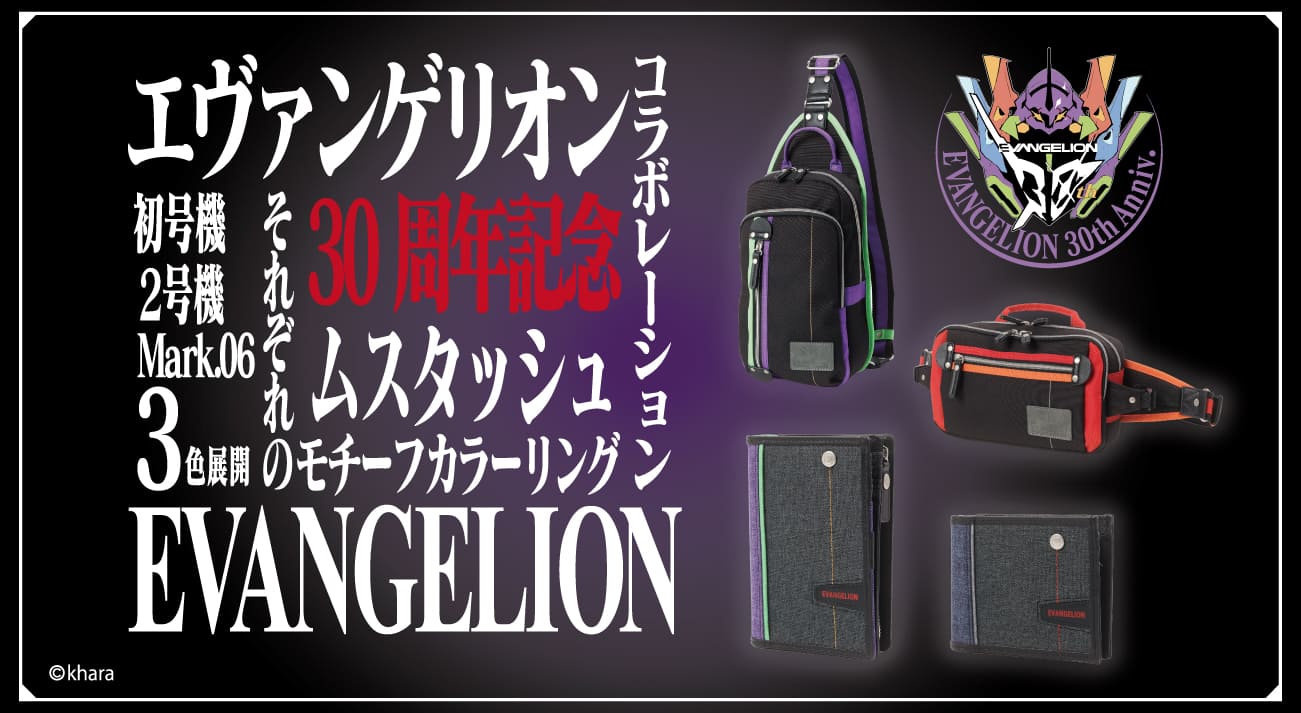 「エヴァンゲリオン」とバッグブランド「MOUSTACHE(ムスタッシュ)」のコラボレーションシリーズに30周年記念デザインのバッグと財布が登場。