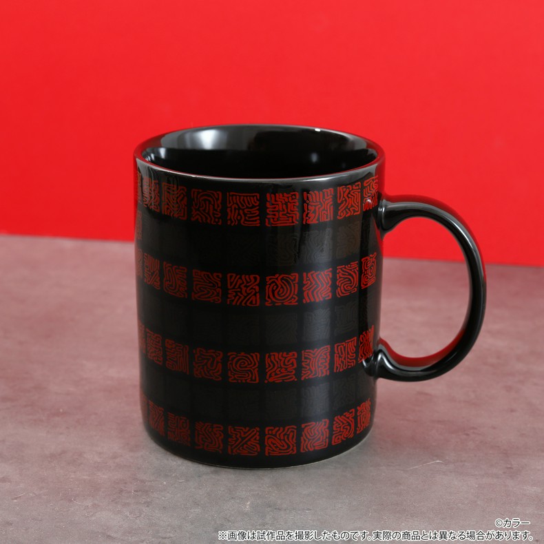 作中に登場する封印柱をイメージした黒いマグカップに、使徒封印用呪詛文様が映えるおしゃれなアイテムです♪