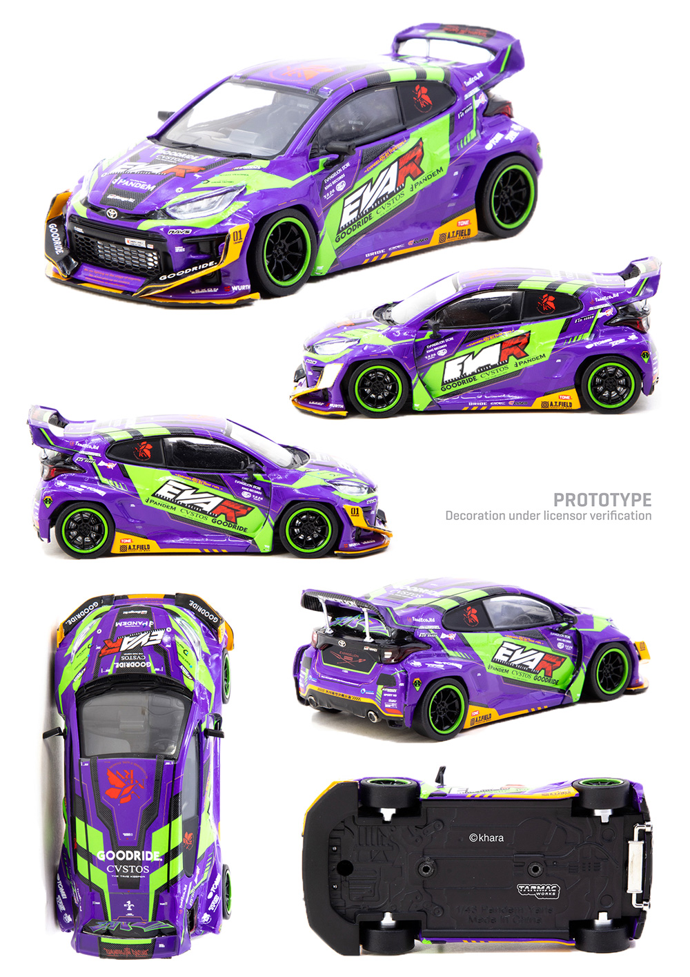 2026年 3月 3日 TARMAC WORKSより、エヴァンゲリオンレーシングのFDJ2024参戦車両「エヴァRT初号機 GOODRIDE GRヤリス」の1/43モデルカーが登場