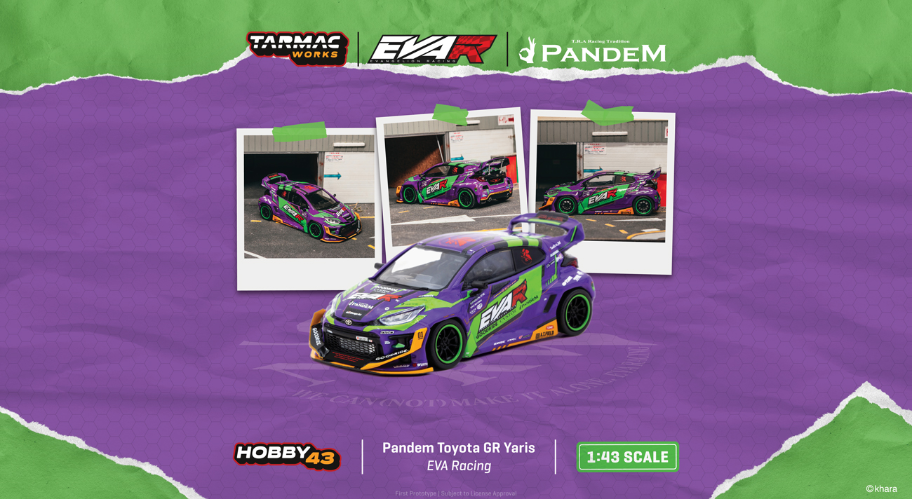 TARMAC WORKSより、エヴァンゲリオンレーシングのFORMULA DRIFT JAPAN 2024 Rd.1参戦車両「1/43 エヴァRT初号機 GOODRIDE GRヤリス」が登場!!