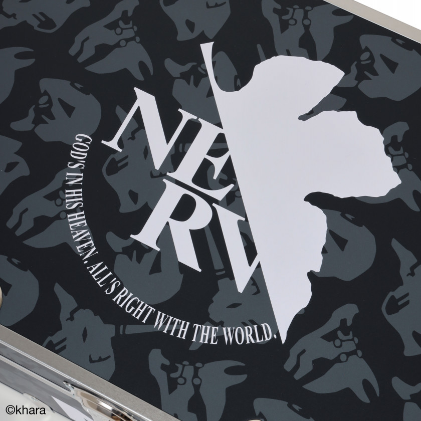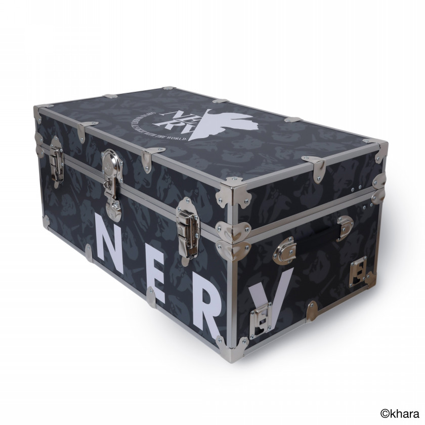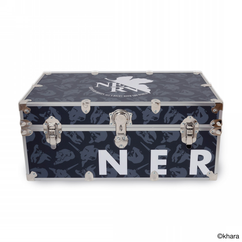 最高級のスチールトランクハードウェアとして、アメリカでは知る人ぞ知るメーカーにRADIO EVAが制作を依頼。確かな完成度はもちろん、RADIO EVAらしい程よいバランスでエヴァンゲリオンの世界観を落とし込んだオシャレな仕上がりとなっています。トランクとしての活用はもちろん、重厚なスチール金具が存在感を出したその見た目は、ソファ前のテーブルとして使用しても遜色ない仕上がりとなっています。